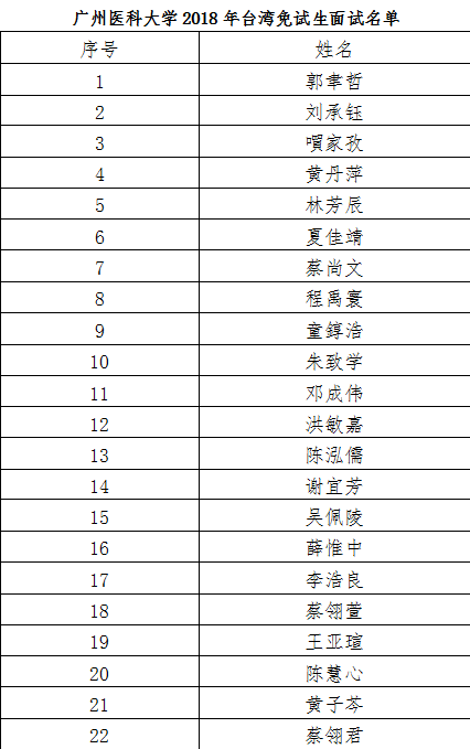 广州医科大学2018年台湾免试生面试通知